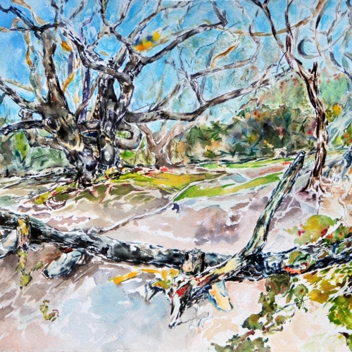 John Blosser offers a collection of recent works representing his creative play with the Direct Observation method. Full of the energy found in the nucleus of a moment, Blosser’s technique focuses on paintings and sketches drawn directly from life: impressions of feelings, shapes, and fleeting memories that echo the summer nights that never seem to last long enough. We can linger over landscapes, objects, and atmospheric scenes from this Professor of Art Emeritus of Goshen College in Indiana.
