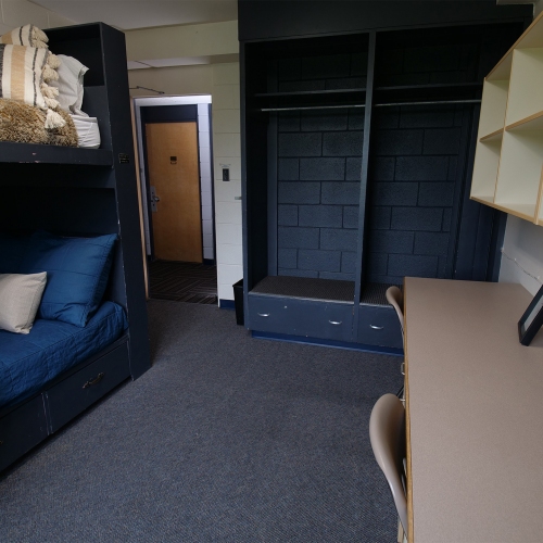 The first and second floors of Poettcker Hall are entirely dormitory style rooms and are divided into two wings. Students can request either single- or double-occupancy rooms.